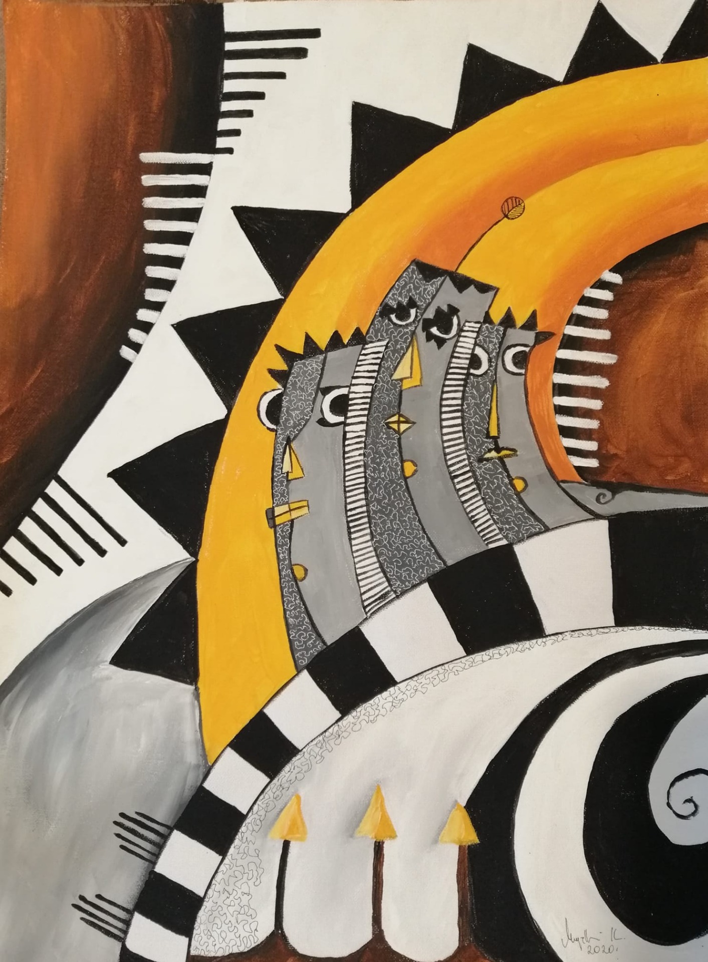 Nap és Hold/ Sun and Moon 40x100 cm/vegyes technika,karton/2022. -