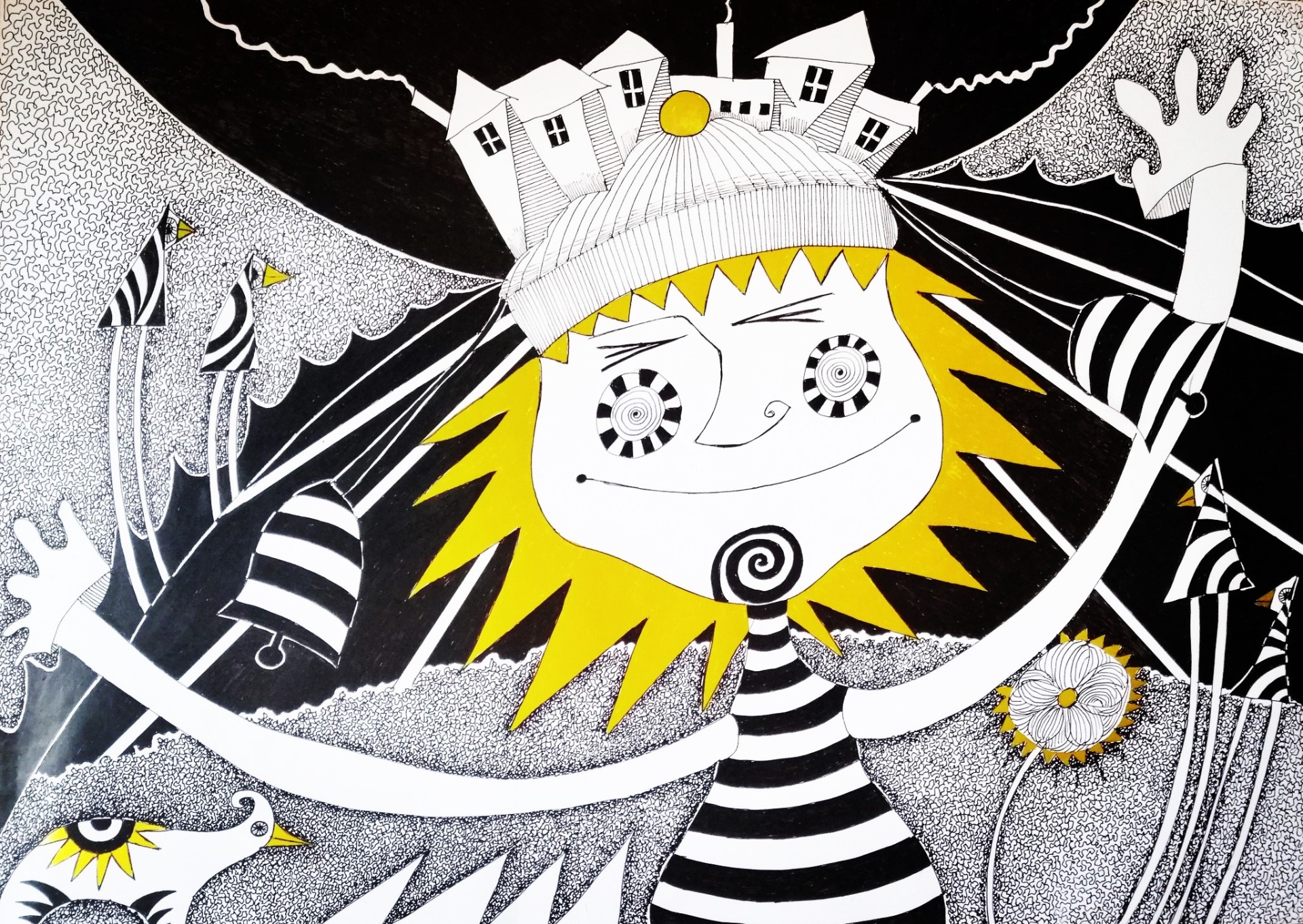 50x40cm/tus/színes ceruza/papír/2018. 350€